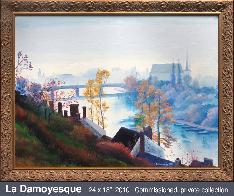 “The roofs are amazing! Looks like a lot of detail work which you have obviously mastered. Still love your clouds and trees, but the roofs are a standout... he hasn't a clue about what's coming! That, with your skill, will make Christmas very memorable.” Later: “Well, the painting was, indeed, a pleasant Christmas surprise...He was amazed and thrilled.”