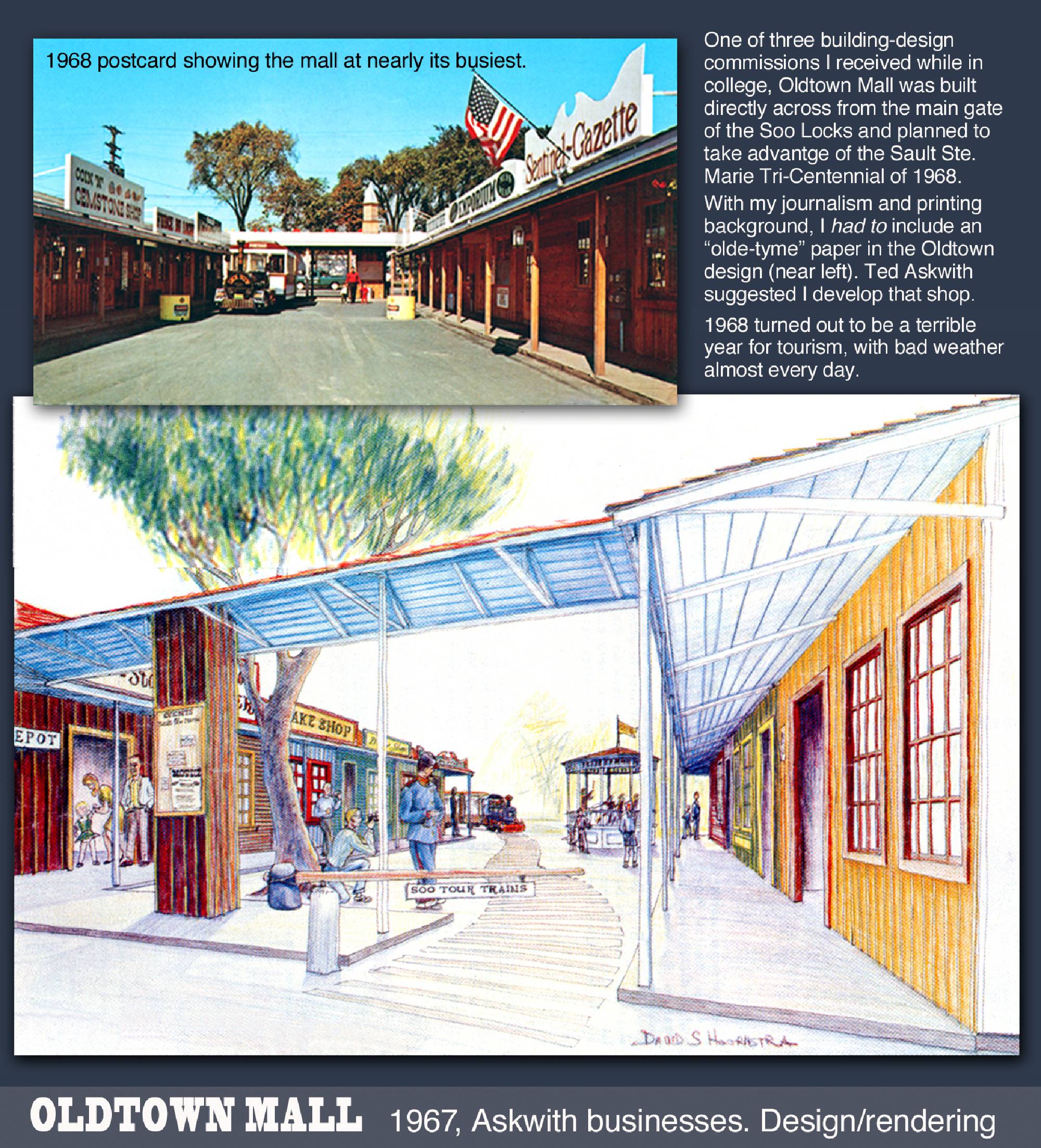 My first commercial art jobs came in high school and college, including restaurant and tourist mall designs.